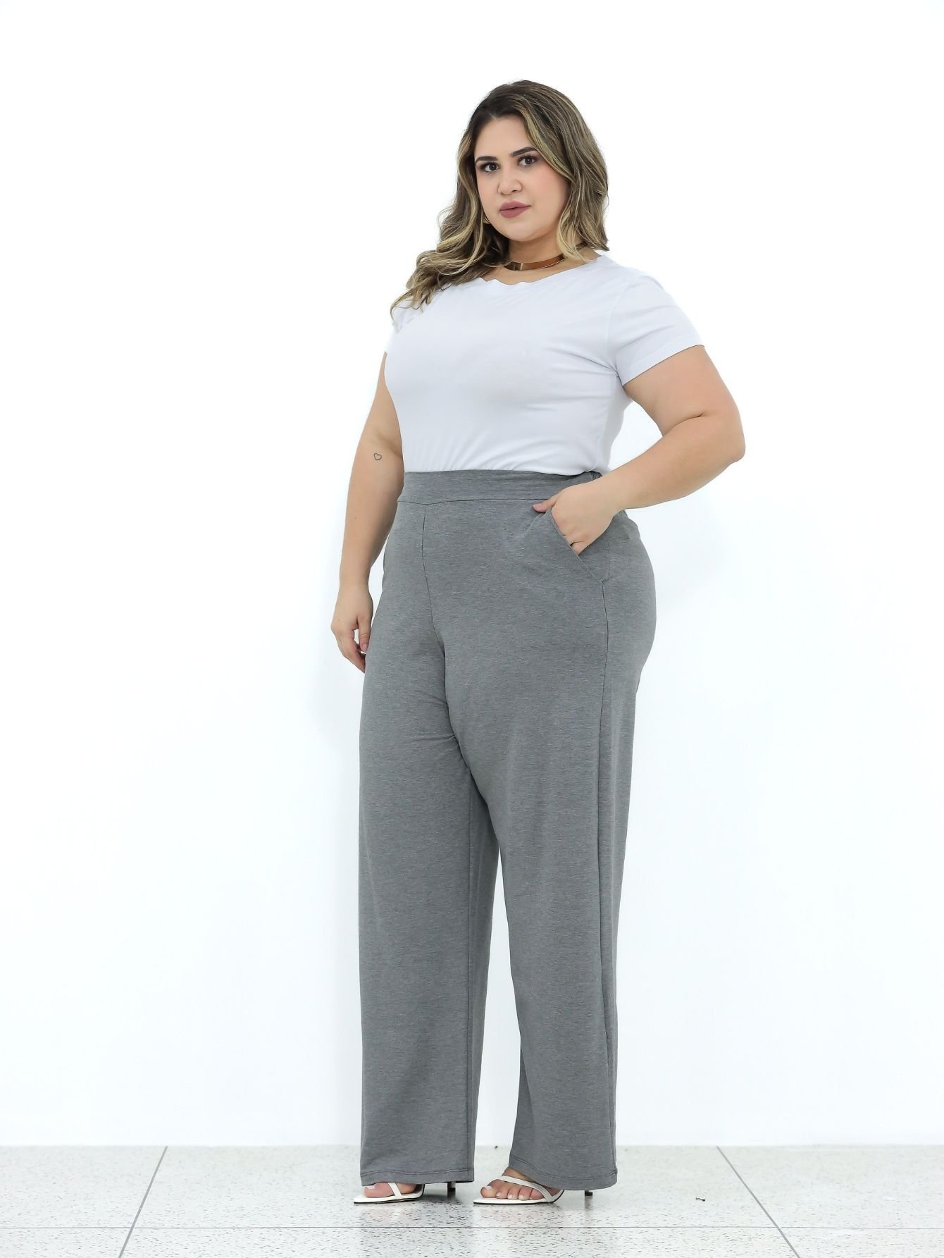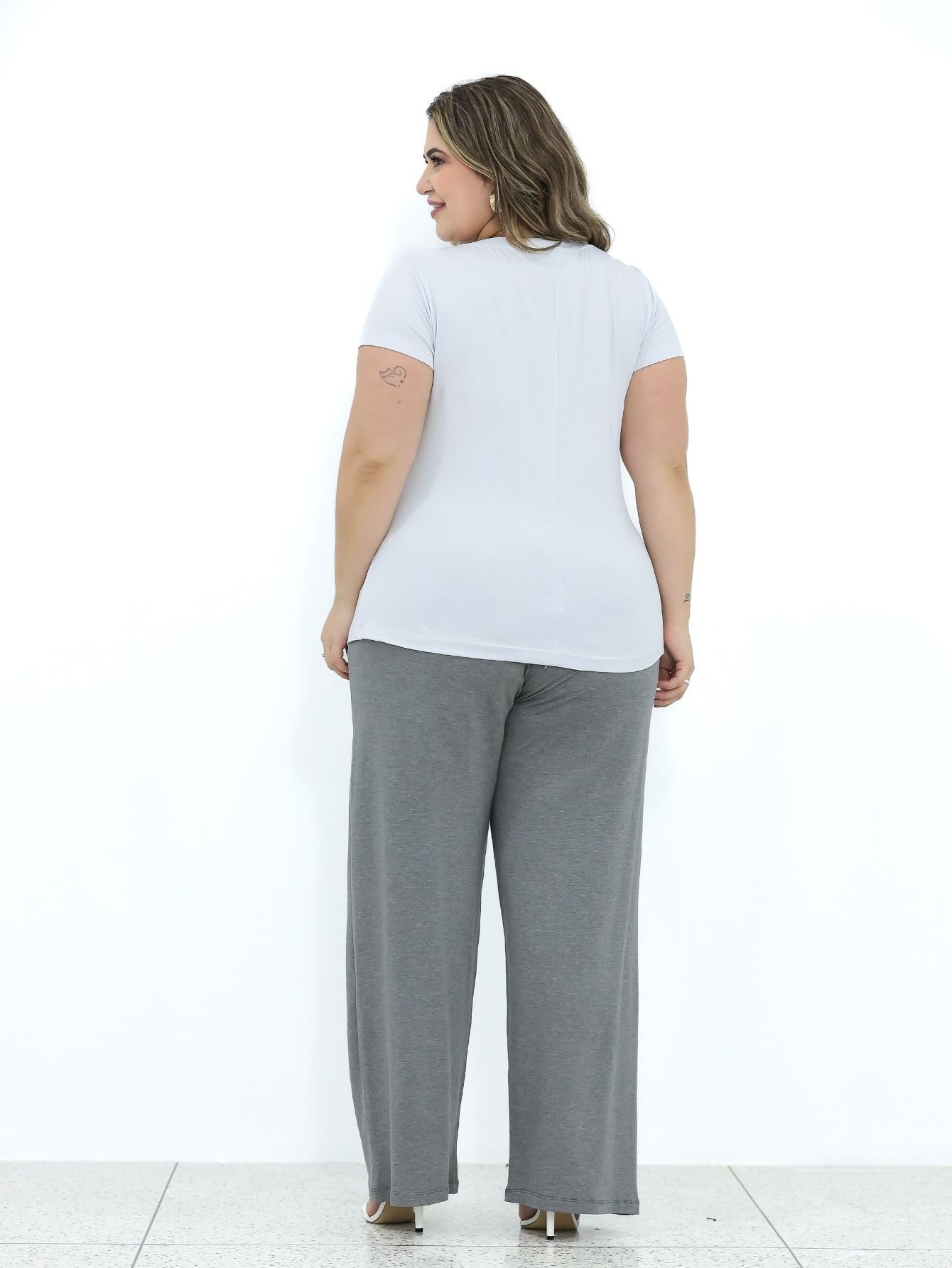 A elegância do minimalismo encontra o conforto que você merece! Esta blusa branca é o básico sofisticado que toda mulher plus size precisa ter.